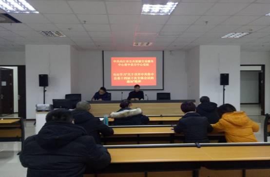 2019年1月30日,内江市公共资源交易服务中心资中县分中心召开党组(扩大)会议,会议由党组书记张万华主持,党组成员参加会议,中心党员干部列席会议。