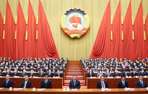 大会首先审议通过了政协第十三届全国委员会第四次会议议程。