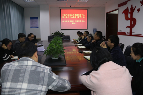 11月30日下午,内江市公共资源交易中心资中县分中心召开中心党组(扩大)会议,组织学习党的十九届五中全会精神,由中心党组书记张万华主持,全体干部职工参加会议。