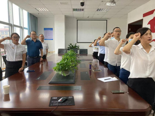 活动中还进行了集体宣誓重温入党誓词,李波同志带领全体党员面对庄严肃穆的党旗,举起右拳,秉承初心高声重温入党誓词:“我志愿加入中国共产党,拥护党的纲领,遵守党的章程,履行党员义务,执行党的决定,严守党的纪律,保守党的秘密,对党忠诚,积极工作,为共产主义奋斗终身,随时准备为党和人民牺牲一切,永不叛党”。这是党员对党的忠诚诺言,这是党员对人民的信任承诺,鲜艳的党旗和同志们胸前的党徽相映生辉,入党时的澎湃心情犹在心间。