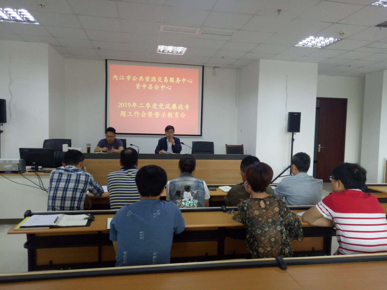 2019年4月29日,内江市公共资源交易服务中心资中县分中心召开2019年二季度党风廉政工作会暨警示教育会,会议由党组书记张万华主持,党组成员参加会议,中心干部职工列席会议。