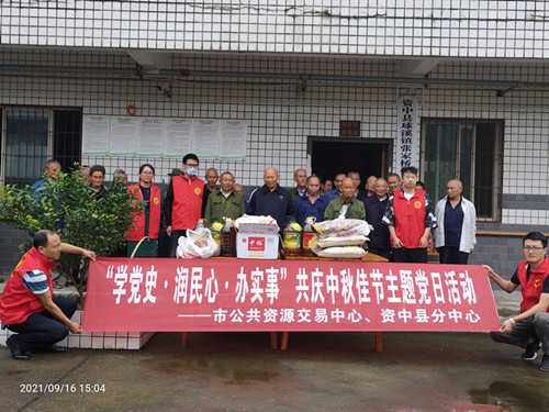 粒粒大米秋风爽,浓浓真情桂花香。中秋节即将来临之际,为深入开展党史学习教育,扎实推进“我为群众办实事”实践活动,资中县分中心联合市公共资源交易中心的党员志愿服务者到县球溪镇中心敬老院开展了“学党史·润民心·办实事”共庆中秋佳节主题党日活动。