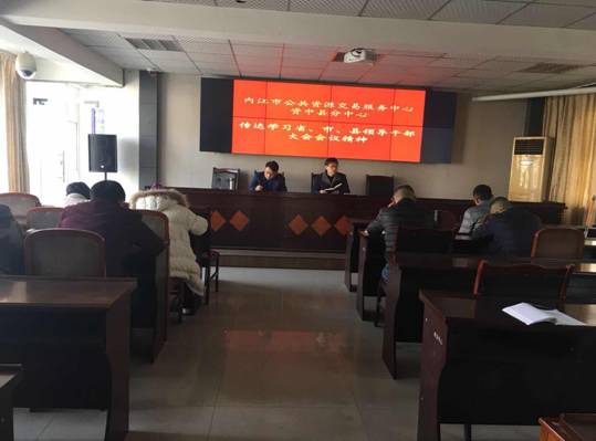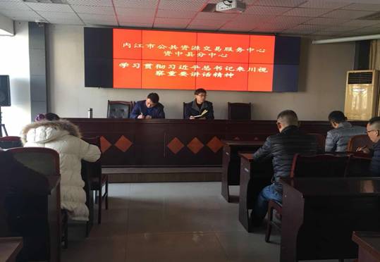 2018年2月24日,内江市公共资源交易服务中心资中县分中心召开全体党员大会,组织中心全体党员干部贯彻学习习近平总书记来川视察重要讲话精神和省、市、县干部大会精神,会议由中心党组书记、主任张万华主持。