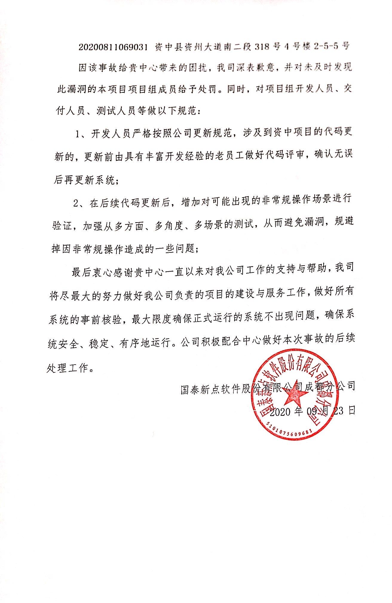 因该事件给交易各方带来的困扰,我中心深表歉意,中心要求新点软件公司及时修正系统,并积极与交易各方沟通协商后续解决办法。
