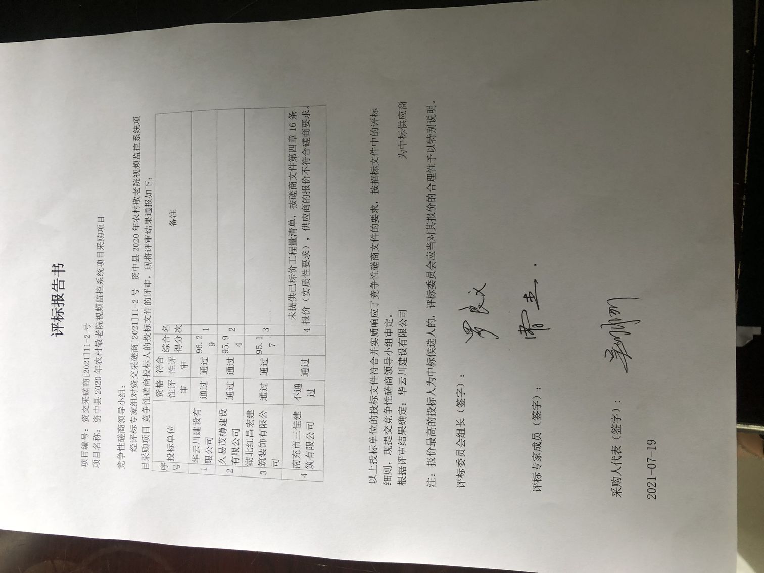 资中县2020年农村敬老院视频监控系统项目结果公示