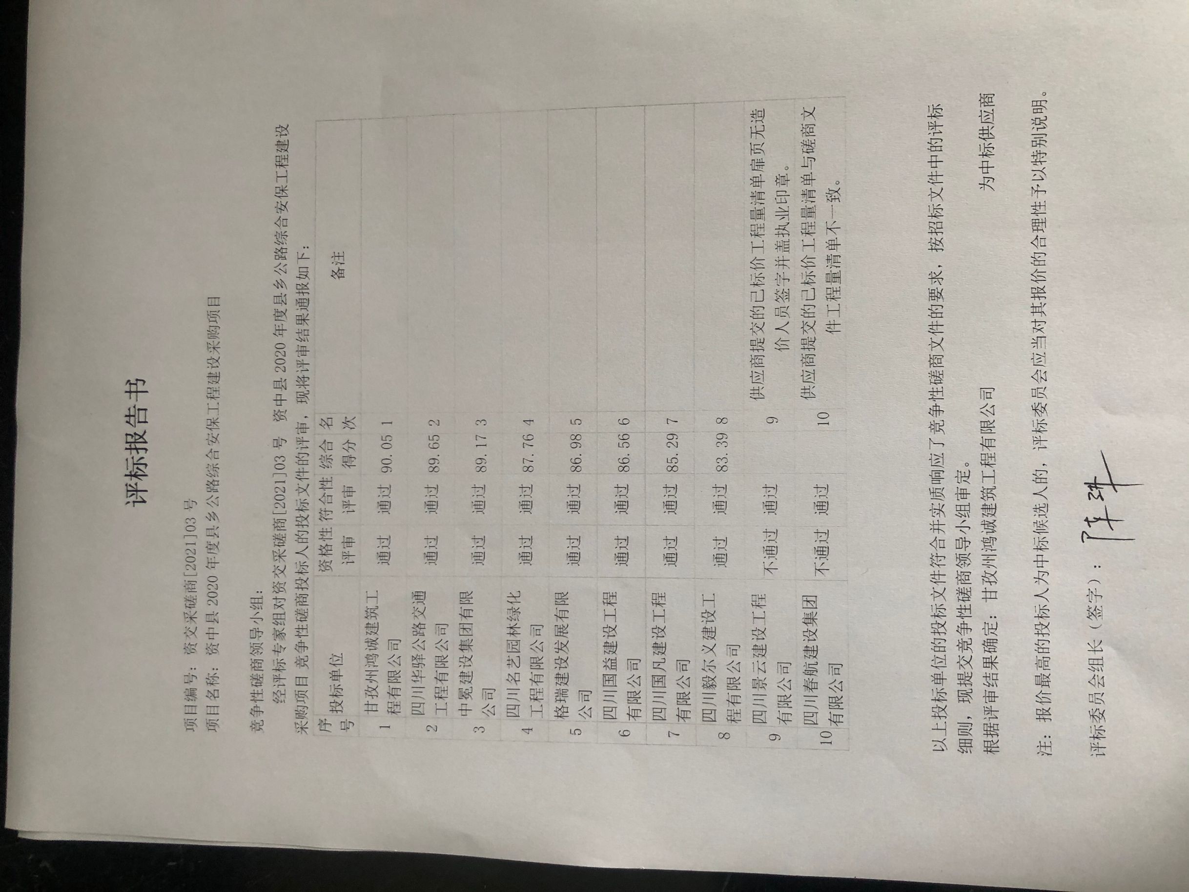 资中县2020年度县乡公路综合安保工程建设采购项目结果公示