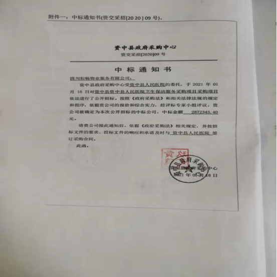 [合同备案]资中县人民医院卫生保洁服务采购项目