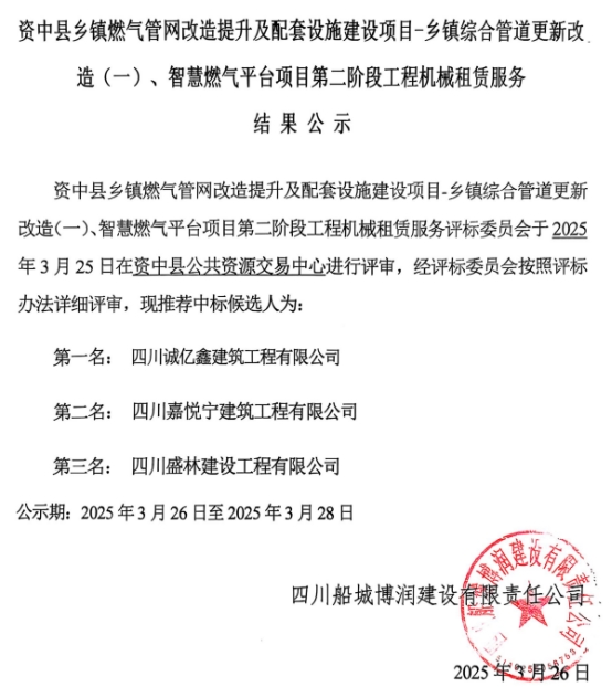 资中县乡镇燃气管网改造提升及配套设施建设项目-乡镇综合管道更新改造(一)、智慧燃气平台项目第二阶段工程机械租赁服务