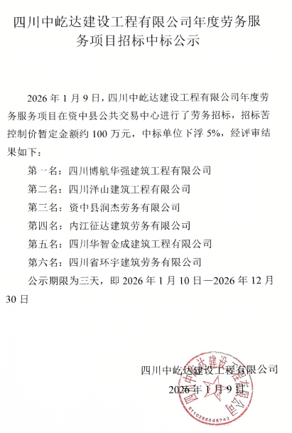 四川中屹达建设工程有限公司年度劳务